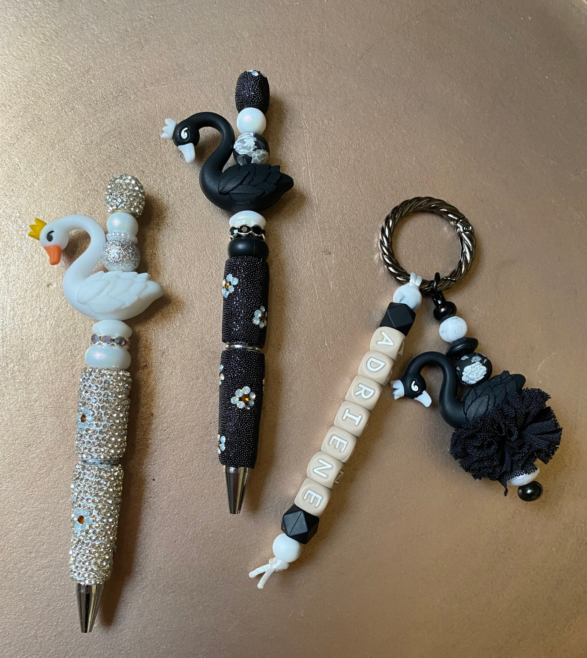 Deze sleutelhanger kan je zelf samen stellen, kies de kleur van het zwaantje en de gewenste kleur letterkraal helemaal zelf. Leuk om te combineren met onze zwaantjes pennen!